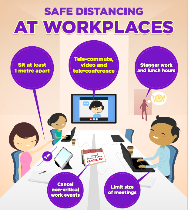 Employers should adhere to the standard operating procedure (SOP) set by the Health Ministry and practise social distancing. Not all their staff should be back at the workplace. Company should adopt Rotation scheduled for staff to come back to work
